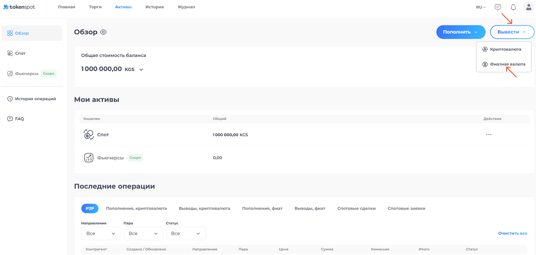 Обращаем ваше внимание, что для вывода виртуальных фиатных активов, они должны находиться у вас на счете.